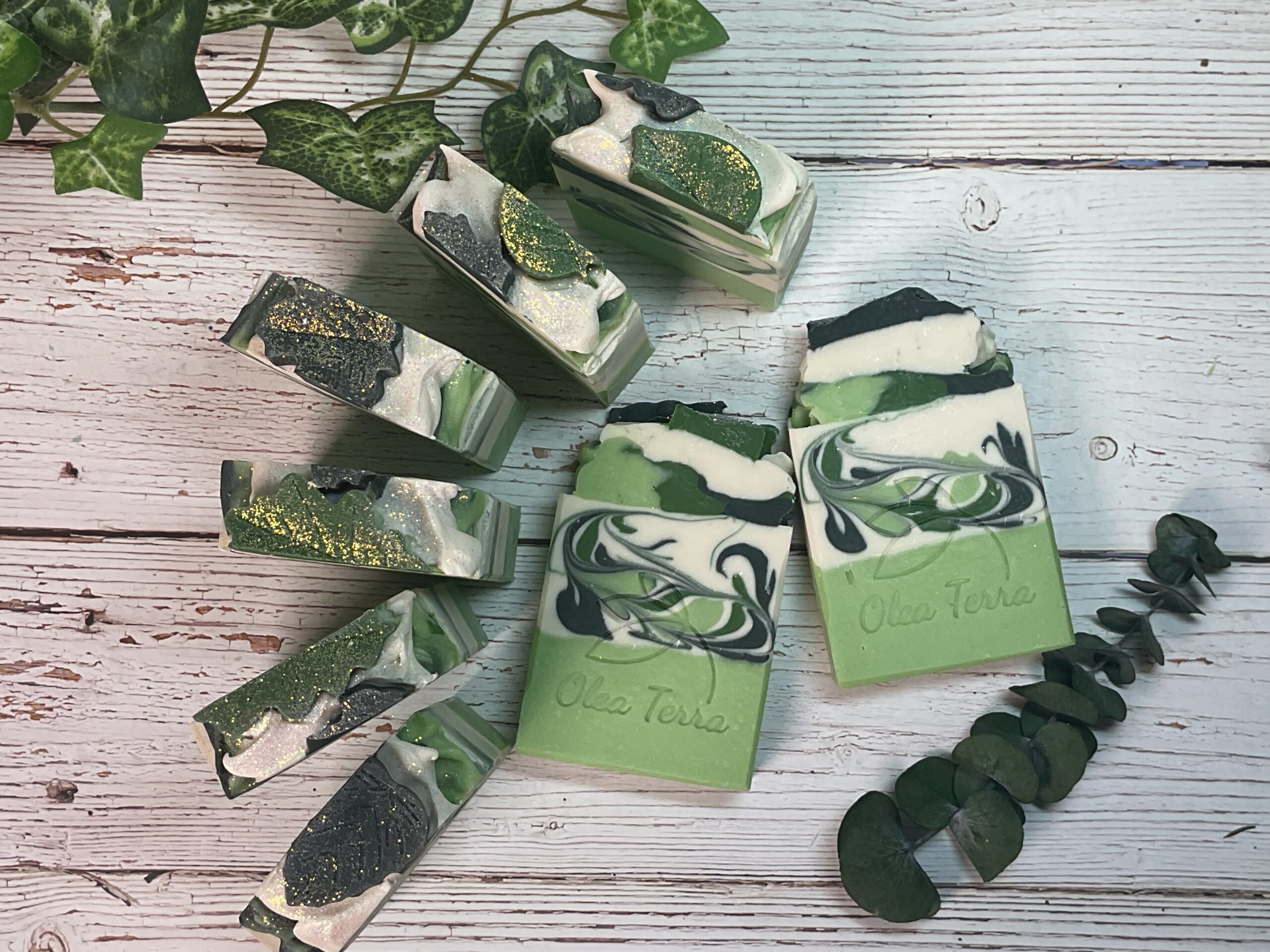 Chez Olea Terra Savons naturels faits main, le savon artisanal Eucalyptus et menthe est fait selon le procédé de saponification à froid. Ce procédé fait que le savon est naturellement hydratant, à cause des huiles présentes et de la glycérine qui se forme naturellement. Peut-être n’aurez-vous plus besoin de crème hydratante après la douche, ou beaucoup moins.